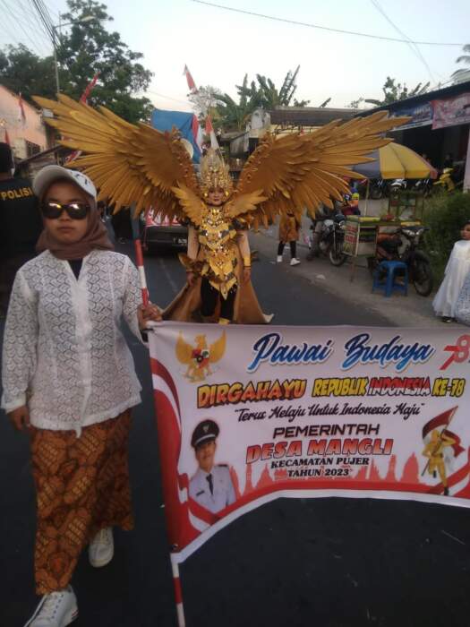 BONDOWOSO, GEMPUR NEWS.COM – Dalam rangka memperingati Hari Kemerdekaan Republik Indonesia ke 78 yang diperingati setiap tanggal 17 Agustus, Pemdes Mangli Kecamatan Pujer Kabupaten Bondowoso Jatim, ikut meriahkan kegiatan Karnaval, yang digelar oleh Pemerintah Kecamatan Pujer