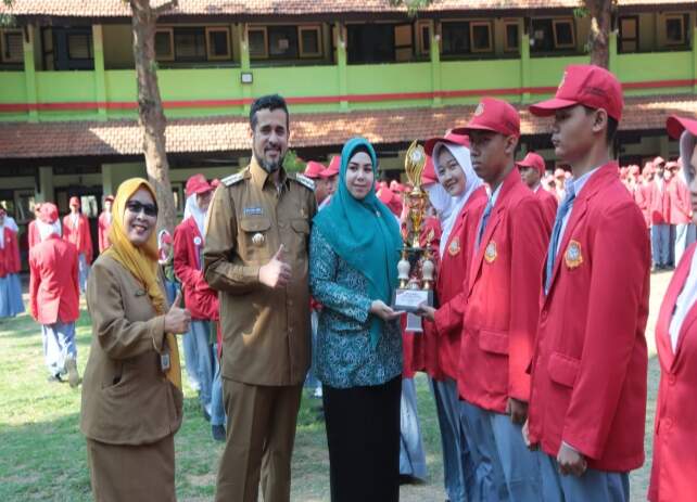 Wali Kota Probolinggo Habib Hadi Zainal Abidin menjadi pembina apel dalam giat safari sekolah program pembinaan Remaja Aminah yang bertempat di SMKN 1, Senin (25/9) pagi.