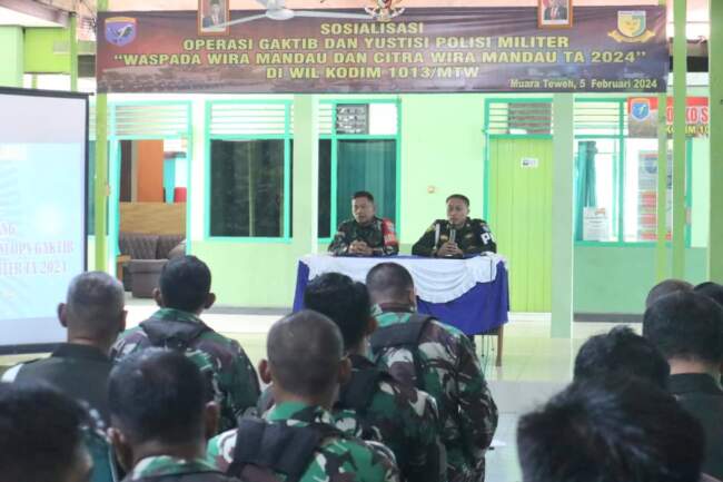 Sosialisasi Operasi Gaktib dan Yustisi Polisi Militer tahun 2024 bertemakan “Waspada Wira Mandau Dan Citra Wira Mandau”.