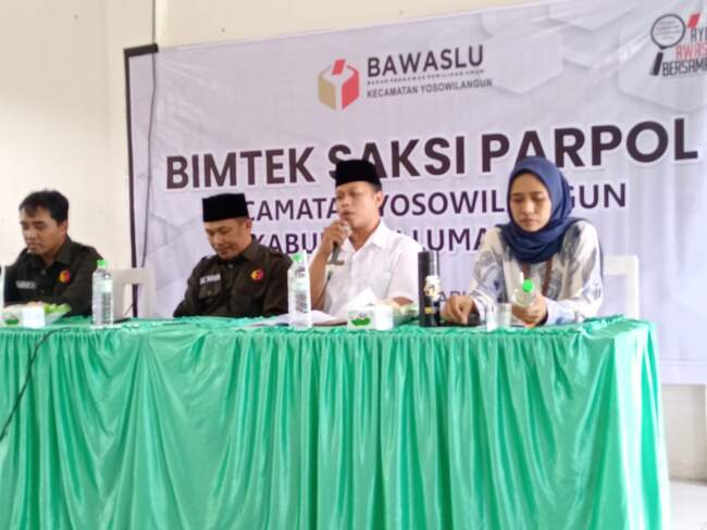 Gempur News Yosowilangun – Sebuah bimbingan teknis (bimtek) yang diselenggarakan oleh Panitia Pengawas Pemilu Kecamatan (Panwascam) berlangsung di Sekolah Tinggi Bustanul Ulum, Desa Krai, pada Rabu (5/2/2024) pukul 09.00 WIB. Bimtek ini diikuti oleh anggota Panwascam, ketua Panitia Pemilihan Kecamatan (PPK), dan beberapa tokoh masyarakat.