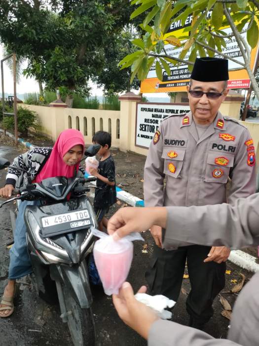 “Kegiatan bagi-bagi takjil yang kami lakukan ini paling tidak sedikit dapat membantu masyarakat dalam berbuka puasa,” kata Iptu Soedijo Menurutnya, Kegiatan ini salah satu bentuk kepedulian terhadap sesama dengan harapan dapat membangun tali silaturahmi antara masyarakat dengan polisi.