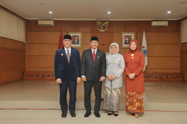 Penjabat (Pj) Wali Kota Cimahi Dicky Saromi secara resmi melantik Budi Raharja Asisten 1 Bidang Ekonomi dan Pembangunan Kota Cimahi, sebagai Penjabat Sekretaris Daerah (Sekda) Kota Cimahi, bertempat di Aula Gedung A Kantor Pemerintah Daerah Kota Cimahi, Jumat (02/08). Pelantikan dan pengambilan sumpah jabatan ini dihadiri oleh unsur Forkopimda Kota Cimahi, para Asisten Setda Kota Cimahi dan Kepala Perangkat Daerah di lingkungan Pemerintah Daerah Kota Cimahi.