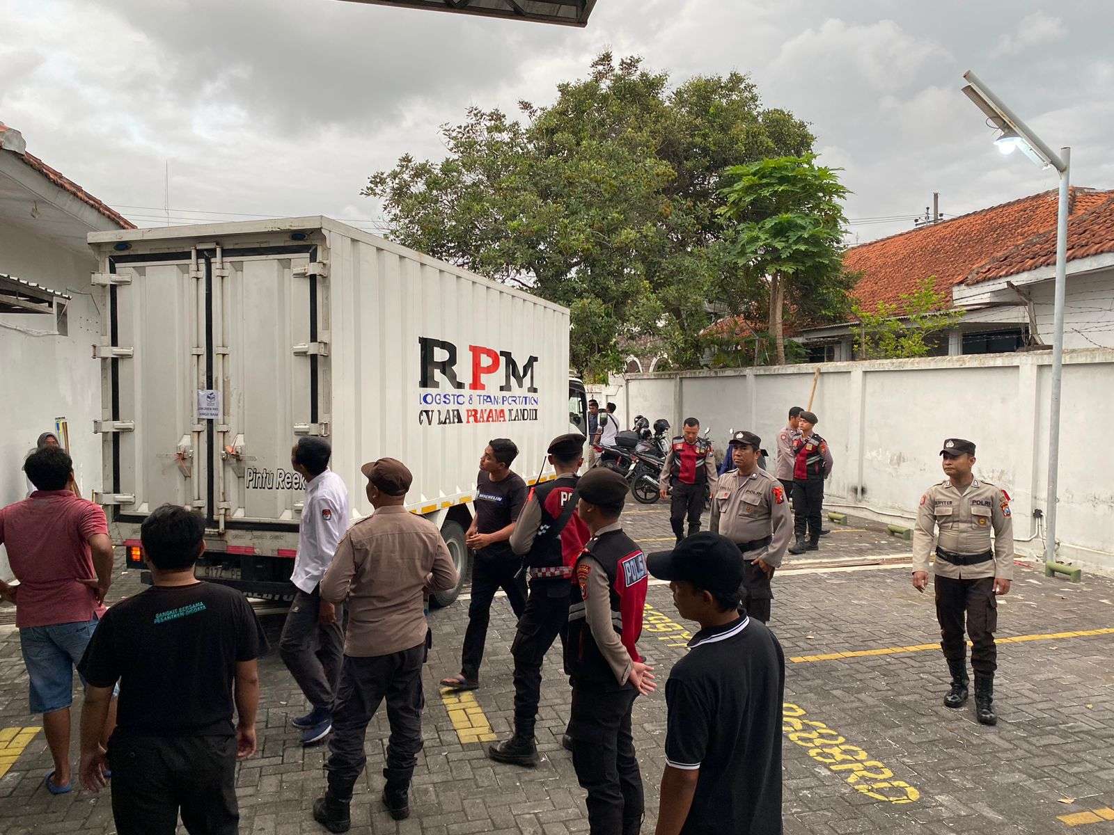 Kedatangan Surat Suara di Gudang KPU, Mendapatkan Pengawalan Ketat Dari Polres Lumajang