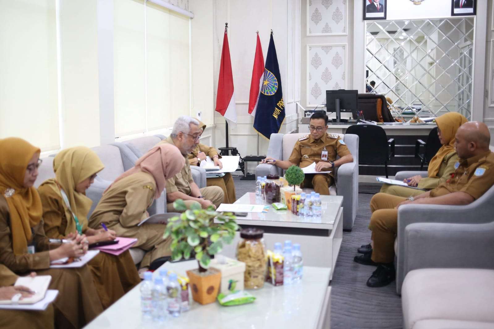 Hadir pula di Ruang Kerja Wali Kota itu, Kepala Dinkes PPKB dr. NH Hidayati, Kepala BPPKAD Ratri Dian Sulistyawati, Kabag Hukum Denny Bagus Erwanto dan Kepala Bappeda Diah Sajekti Widowati.
