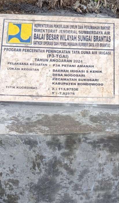 Bondowoso,Gempurnews- Kemetrian Pekerjaan Umum dan Perumahan Rakyat (PUPR) melalui Direktorat Jenderal Sumber Daya Air, menggelontorkan anggaran padat karya melalui Program Percepatan Peningkatan Tata Guna Air Irigasi (P3-TGAI) di tahun 2024, kepada puluhan Perkumpulan Petani Pemakai Air (P3A) di Bondowoso Jawa Timur dan salah satu penerima program tersebut Desa Nogosari Kecamatan Sukosari Kabupaten Bondowoso.