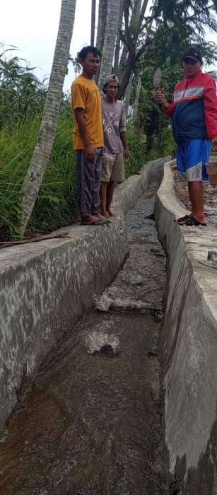 Sesuai dengan target pencapaian program ini, kami alokasikan untuk membangun plengsengan sepanjangan 275 meter (kanan-kiri). Hal ini kami lakukan untuk melancarkan air irigasi ke sawah-sawah petani seluas kurang lebih 15 hektar, dan alhamdulilah pekerjaan sudah hampir selesai.