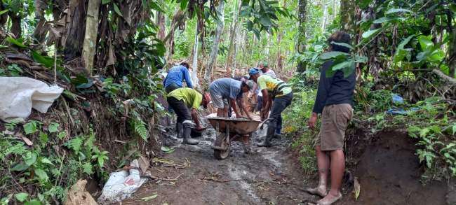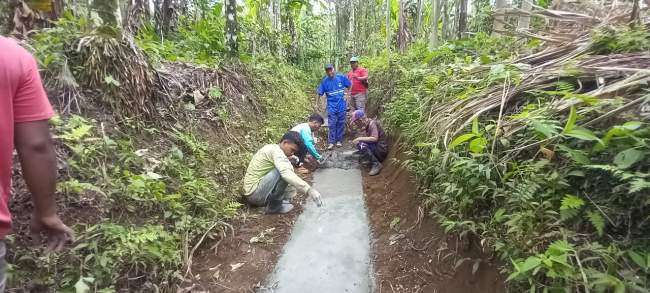Hadir 25 orang petani swadaya melakukan pengecoran Jalan Usaha Tani (JUT) yang terletak di Dusun Darungan, akses tersebut sangat dibutuhkan oleh para petani untuk mempermudah petani sampai ke kebun para petani, hamparan tanaman kopi, pisang, kapulogo dan tanaman kebun lainnya terhampar di sepanjang jalan tersebut