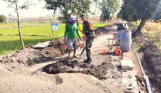 Kegiatan Kerja Bakti ini dilakukan secara gotong royong bersama perangkat desa dan masyarakat sekitar. Dengan demikian, diharapkan jalan kampung desa dapat diperbaiki dan menjadi lebih baik, sehingga dapat mempermudah aktivitas warga sehari-hari. “Kita ingin memastikan bahwa jalan kampung desa ini dapat diperbaiki dan menjadi lebih baik, sehingga dapat mempermudah aktivitas warga,” ujar Sertu Anton.