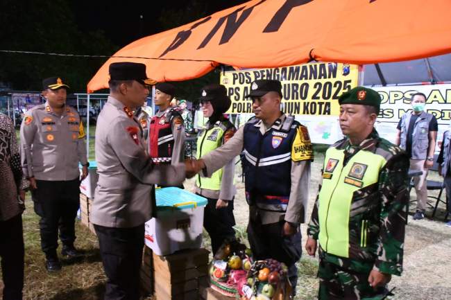 Peninjauan ini bertujuan memastikan kesiapsiagaan personel sekaligus memberikan dukungan moril kepada mereka yang tengah menjalankan tugas pengamanan pada malam 1 Suro , tradisi tahunan yang menjadi bagian penting budaya masyarakat Madiun.