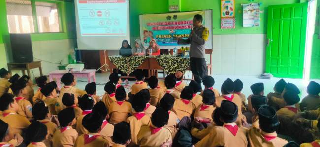 Kediri, -Anggota Polsek Ngasem Polres Kediri melakukan penyuluhan di sekolahan MI Hidayatus Shibyan, di Desa Sumberejo Kecamatan Ngasem Kabupaten Kediri, pada Sabtu (9/8/2025). Penyuluhan itu terkait seputaran bahaya kenakalan remaja.