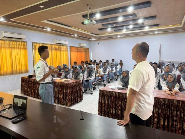 Kegiatan berlangsung interaktif. Para siswa terlihat antusias saat sesi tanya jawab dengan petugas terkait dampak dan bahaya narkoba di lingkungan remaja.