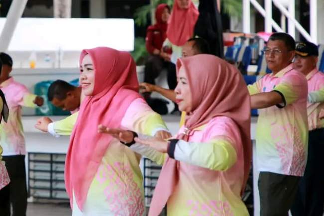 Ikut berbaur dan senam bersama peserta, Ketua TP-PKK Kota Batam, Erlita Amsakar, Sekretaris Daerah (Sekda) Batam, Firmansyah, dan sejumlah pejabat lainnya.