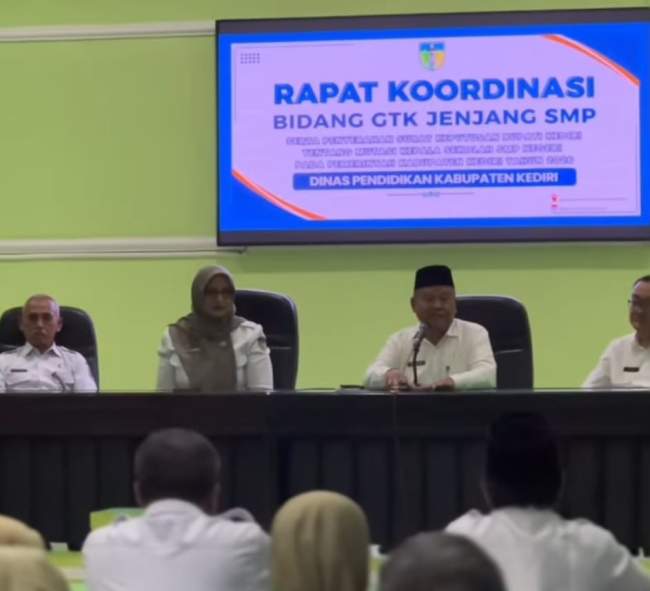 Dinas Pendidikan Kabupaten Kediri mulai menata ulang kepemimpinan sekolah menengah pertama negeri melalui Rapat Koordinasi Bidang Guru dan Tenaga Kependidikan (GTK) yang dirangkai dengan penyerahan Surat Keputusan (SK) Bupati Kediri tentang mutasi Kepala Sekolah SMP Negeri Tahun 2026. Langkah ini menjadi sinyal kuat penyegaran manajemen pendidikan sekaligus penguatan tanggung jawab sekolah terhadap persoalan Anak Tidak Sekolah (ATS).