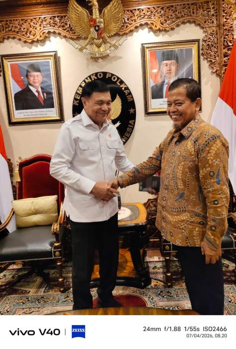 – Prof. Anul Zufri, Ph.D., Wakil Rektor IV Asean University International Malaysia, yang juga Ketua DPW Ikatan Penulis dan Jurnalis Indonesia (IPJI) Sumatera Barat silaturahmi dengan Menteri Koordinator Bidang Politik dan Keamanan Republik Indonesia, Djamari Chaniago, pada Selasa pagi, 7 April 2026, di ruang kerjanya di Jalan Medan Merdeka Barat No. 15, Jakarta Pusat.