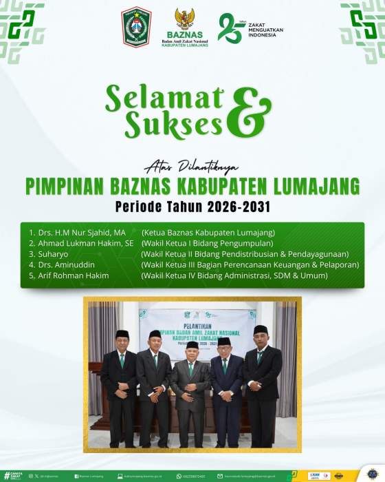 Dengan dilantiknya kepengurusan baru ini, BAZNAS Lumajang diharapkan semakin optimal dalam menjalankan perannya, serta mampu menghadirkan program-program inovatif yang berdampak langsung bagi kesejahteraan masyarakat Lumajang.( Joe).