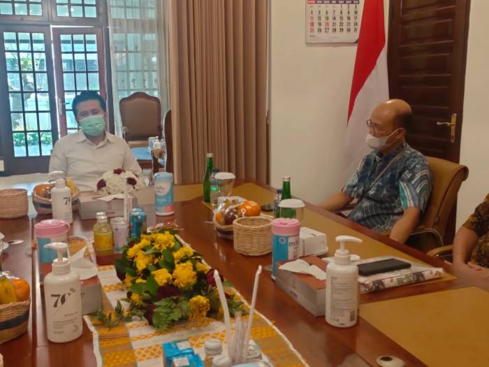 SURABAYA — Kepala Divisi Regional Perum Perhutani Jawa Timur, Karuniawan Purwanto Sanjaya, menemui Wakil Gubernur Jawa Timur Emil Elestianto Dardak dalam rangka silaturahmi dan membahas tentang kondisi perkembangan pengelolan tanaman porang di Surabaya, Senin (7/9).